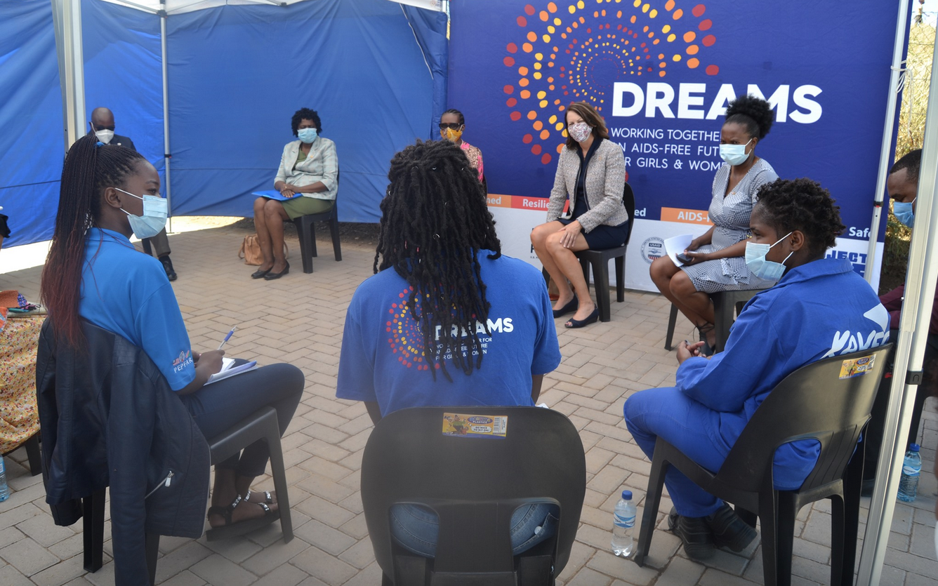 Meeting up: Lisa Johnson, the United States Ambassador to Namibia, and Winnie Byanyima, the Executive Director of UNAIDS, met and talked with young women sponsored by the PEPFAR DREAMS initiative in the Khomas area in April 2021 to learn about their experiences. Ben Nangombe, Executive Director of the Ministry of Health and Social Services, greeted the group at Hakahana Clinic.